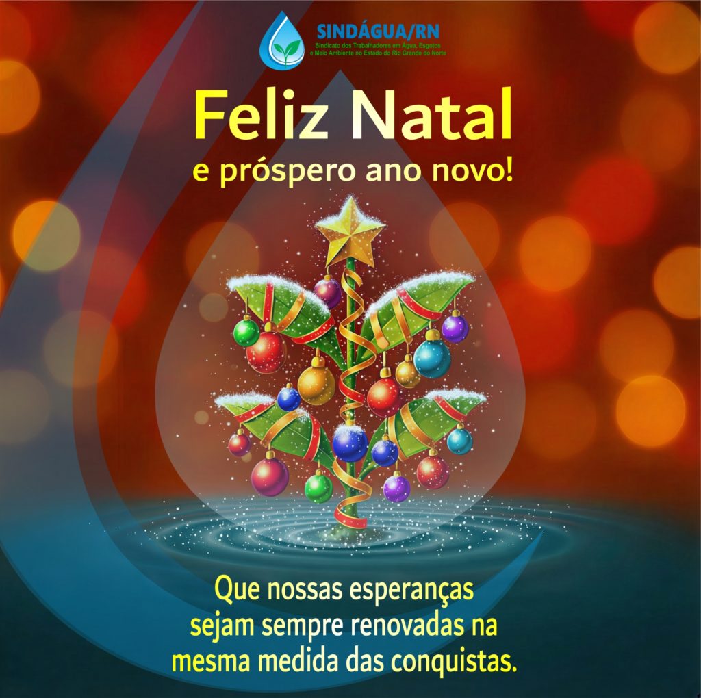 O SINDÁGUA/RN deseja a todos um Feliz Natal, repleto de paz, saúde e confraternização em família. Que o Ano Novo que se aproxima seja um período de grandes vitórias, de continuidade na luta e de prosperidade para cada trabalhador e trabalhadora que, com seu esforço diário, garante a qualidade de vida em nosso estado.