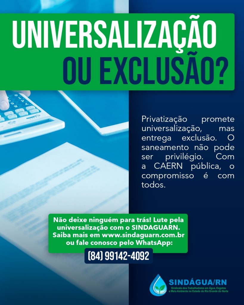 #SINDAGUARN#UniversalizaçãoJá#SaneamentoPúblico#CAERNPública#ÁguaÉDireito#NãoÀPrivatização#DireitosDoPovo
